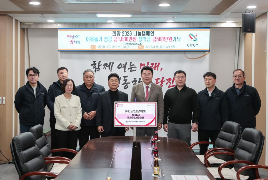 본문 시작 당진항만항운노동조합, 당진장학회에 장학금 500만원 기탁 교육활성화팀 54 2025-12-24 충남 당진항만항운노동조합(위원장 박경일)이 24일 당진시 인재 양성을 위한 장학금 500만 원을 (재)당진장학회에 기탁했다. 기탁된 장학금은 성적이 우수하고 생활 형편이 어려운 지역 학생들에게 지급될 예정이다. 당진항만항운노조는 2020년부터 매년 5백만원의 장학금을 전달하여 올해까지 기탁 누적액은 3천만원이다. 목록 만족도조사 만족도 조사 이 페이지에서 제공하는 정보에 대하여 만족하시나요? 매우만족 만족 보통 불만족 매우불만족 만족도 의견을 입력해주세요