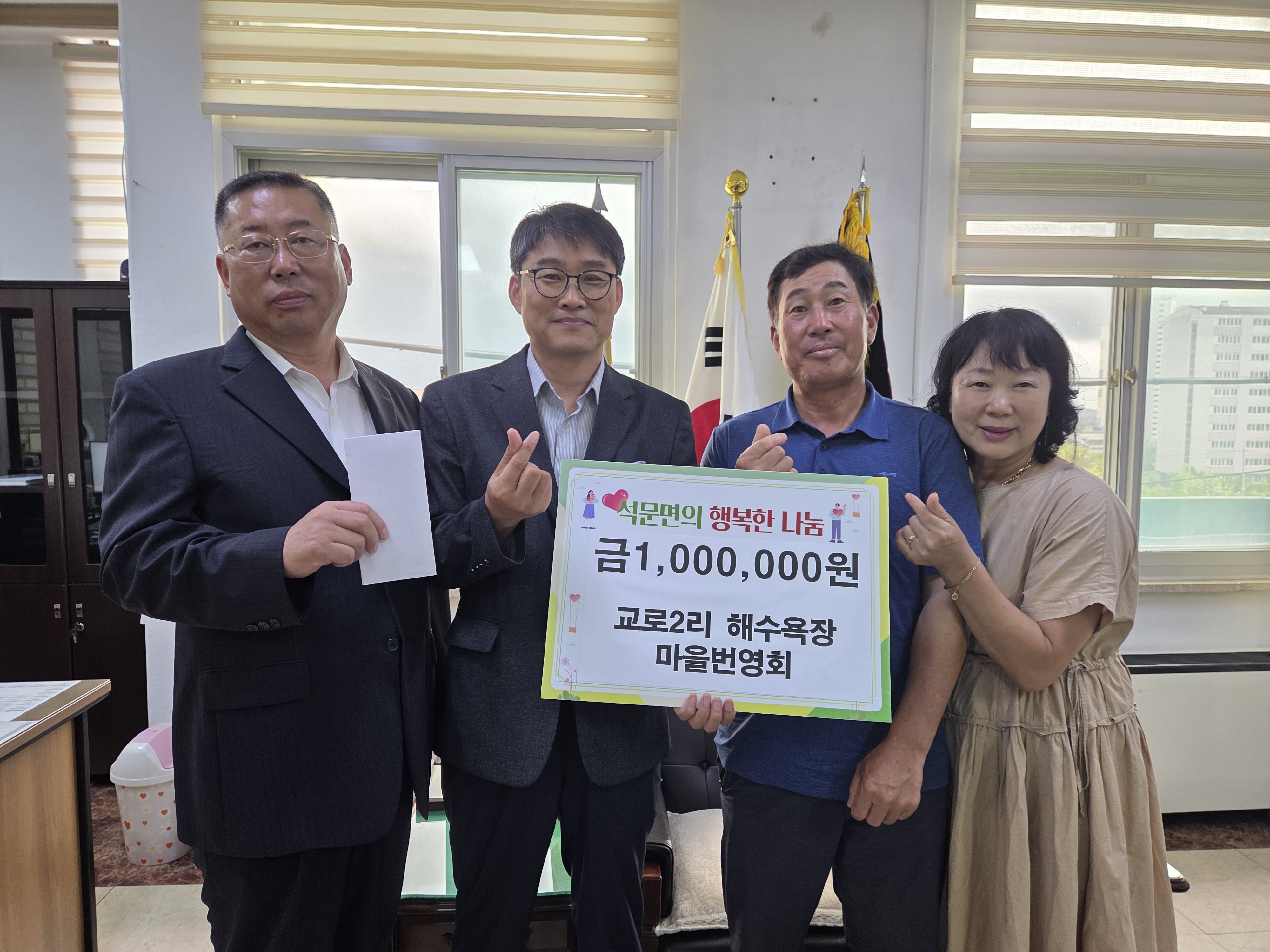 당진시 석문면 교로2리 해수욕장 마을번영회, 이웃돕기 성금 1백만 원 전달