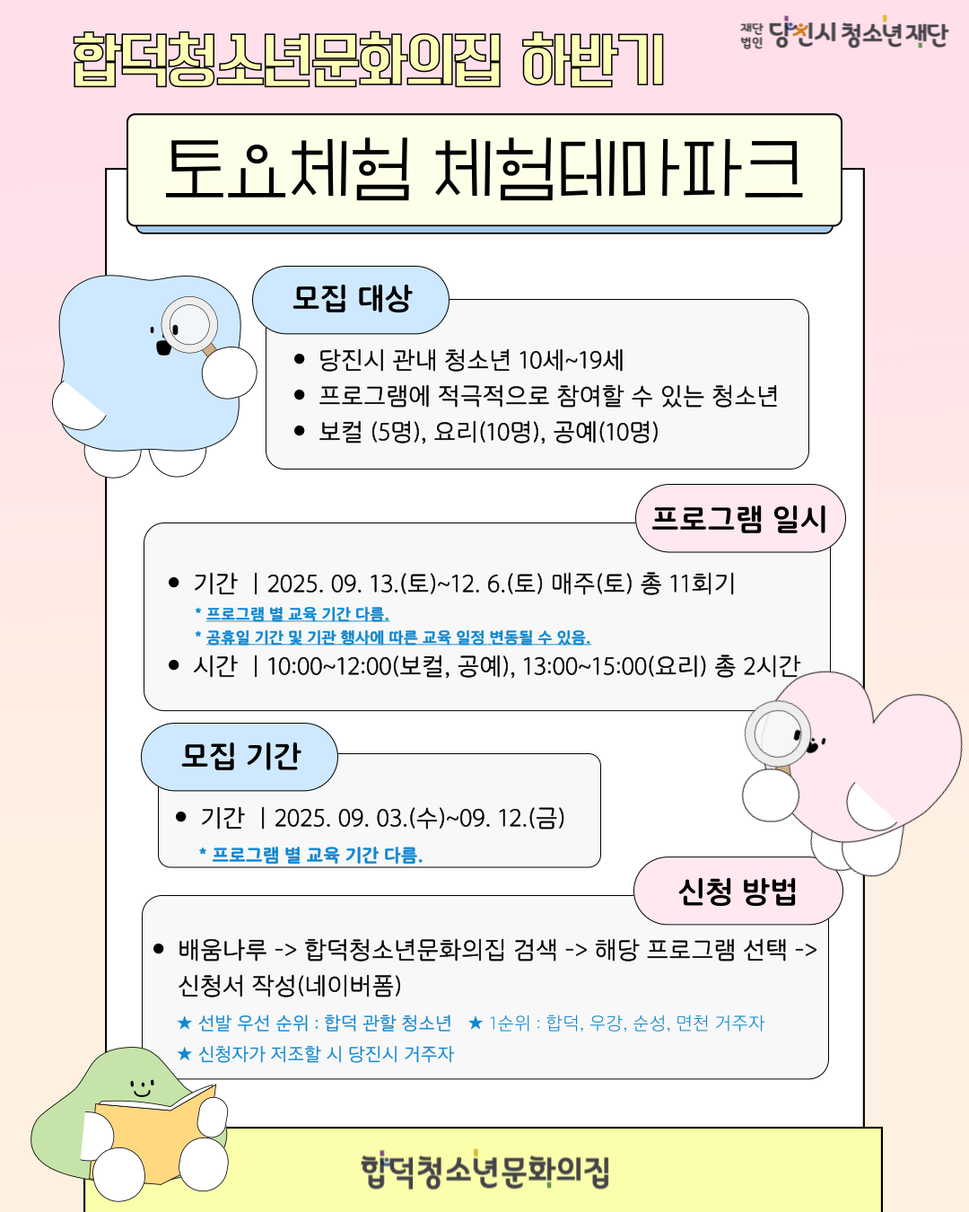 합덕청소년문화의집 토요체험프로그램 체험테마파크 참가자모집』