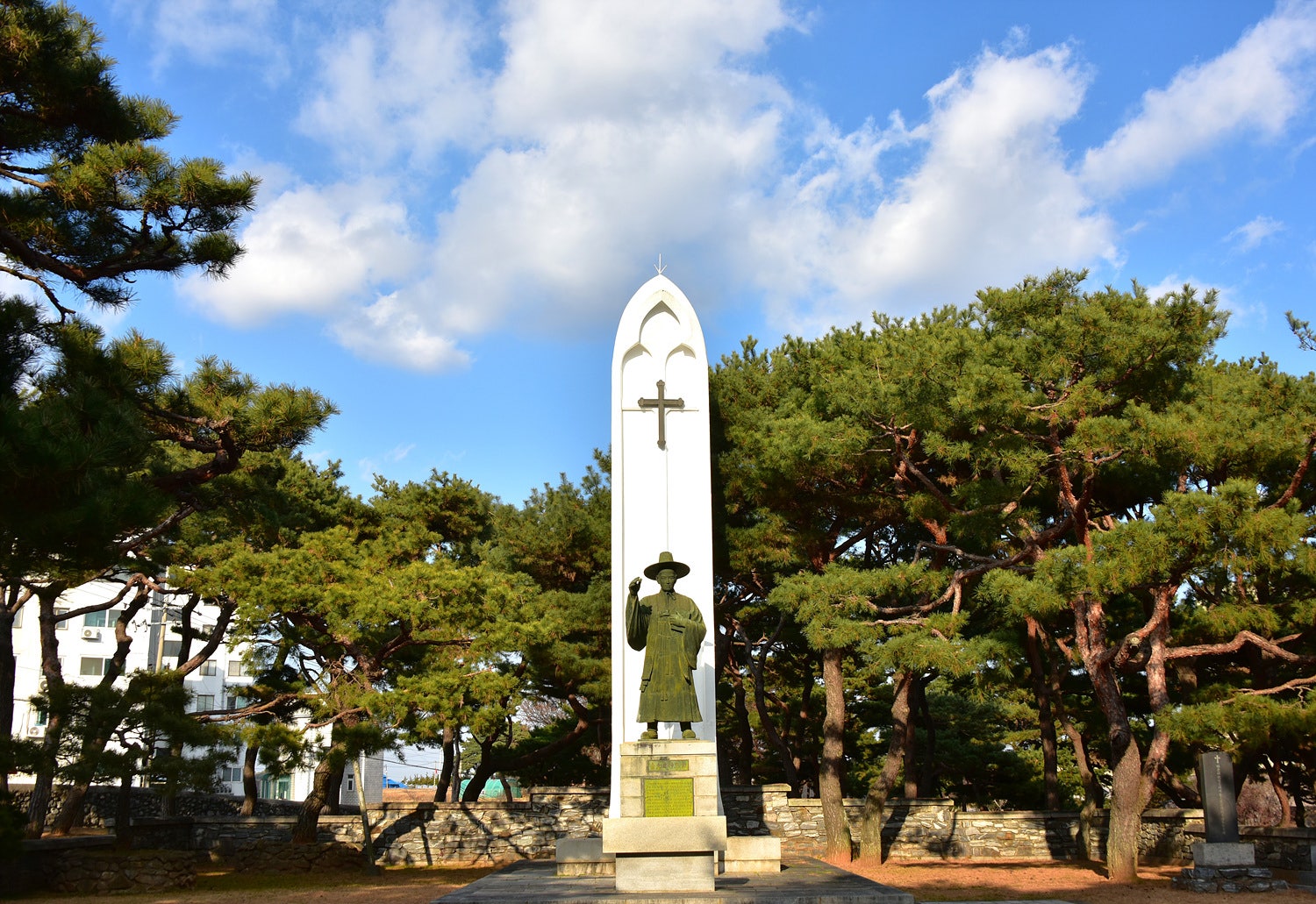 김대건 신부 생가터에는 공사가 진행 중이었습니다. 생가 주변에 담장을 만들고 있었는데 넓은 마당이어서 시원해 보였는데 담장이 생기면서 좁아 보여 아쉬웠습니다. 유적지로 어떤 필요함이 있어서 공사 중이겠지 하며 아쉬움을 달래봅니다.