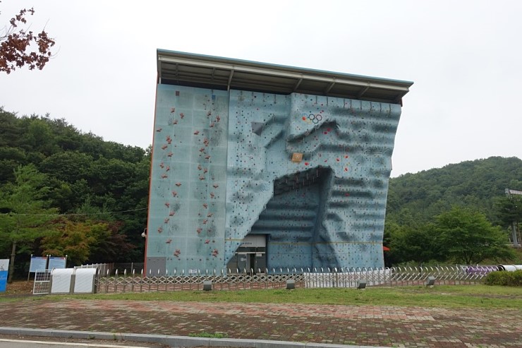 공원에 들어서면 맨 먼저 들어오는 멋진 인공암벽장 건물이 들어옵니다. 주위가 산인데, 초록이 짙어 힐링이 됩니다.