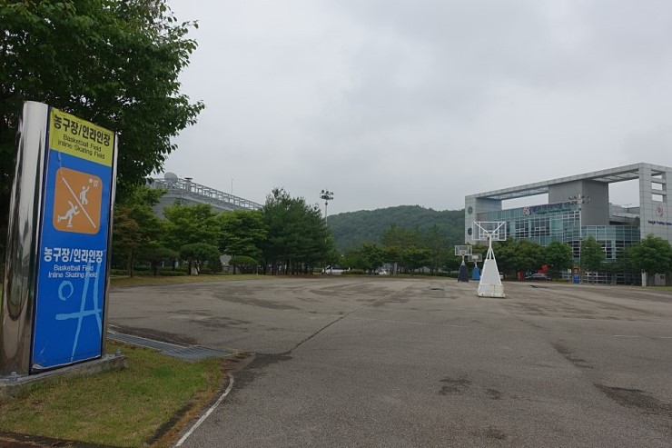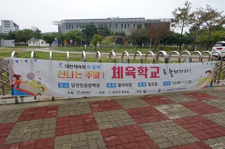 “대한체육회와 함께 신나는 주말! 체육학교로 놀러가자! 현수막이 걸려 있습니다”