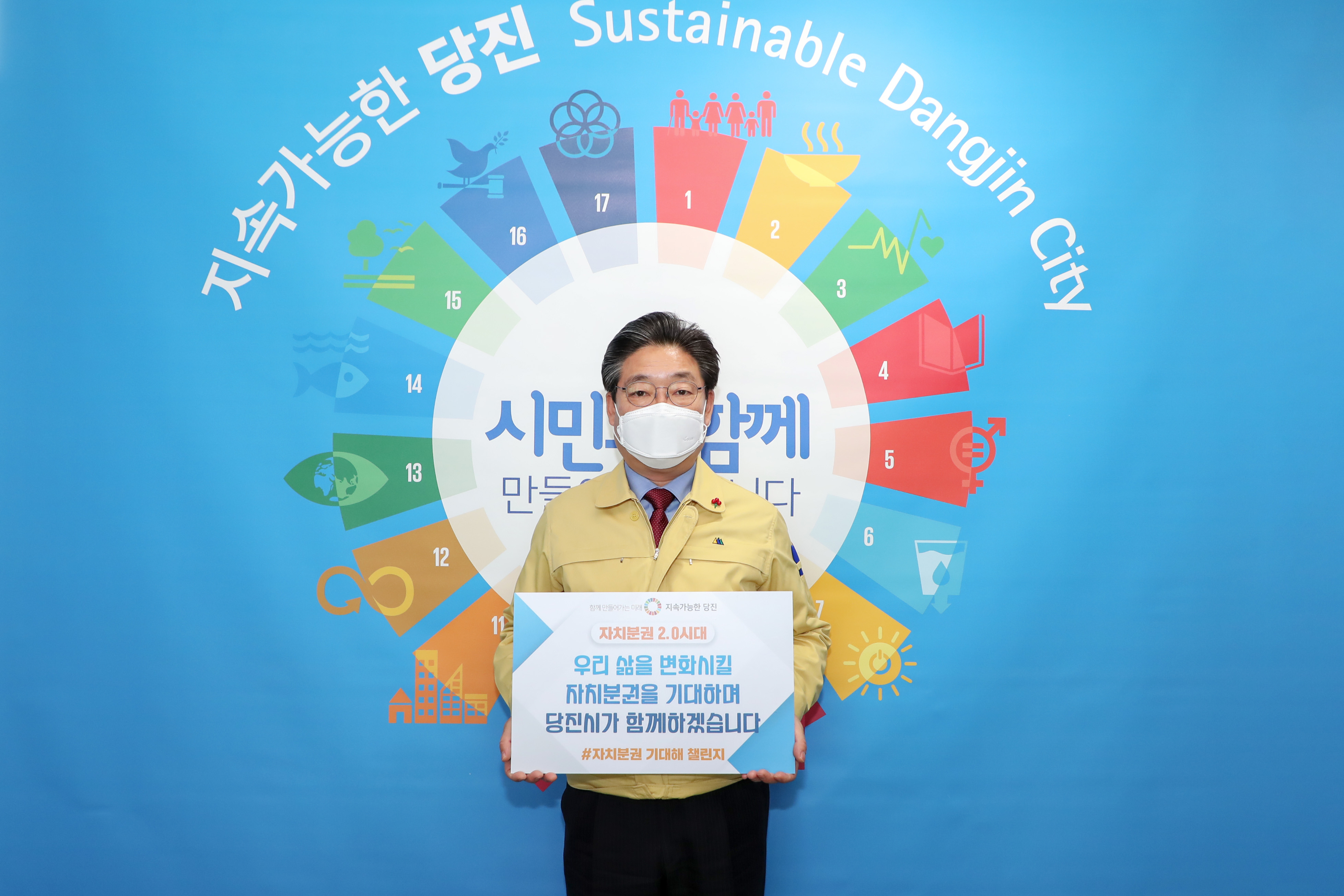 김홍장 당진시장이 15일 ‘자치분권 기대해 챌린지’에 동참해 자치분권 2.0시대를 알리고 주민중심의 지방자치에 대한 기대감을 나타냈다.