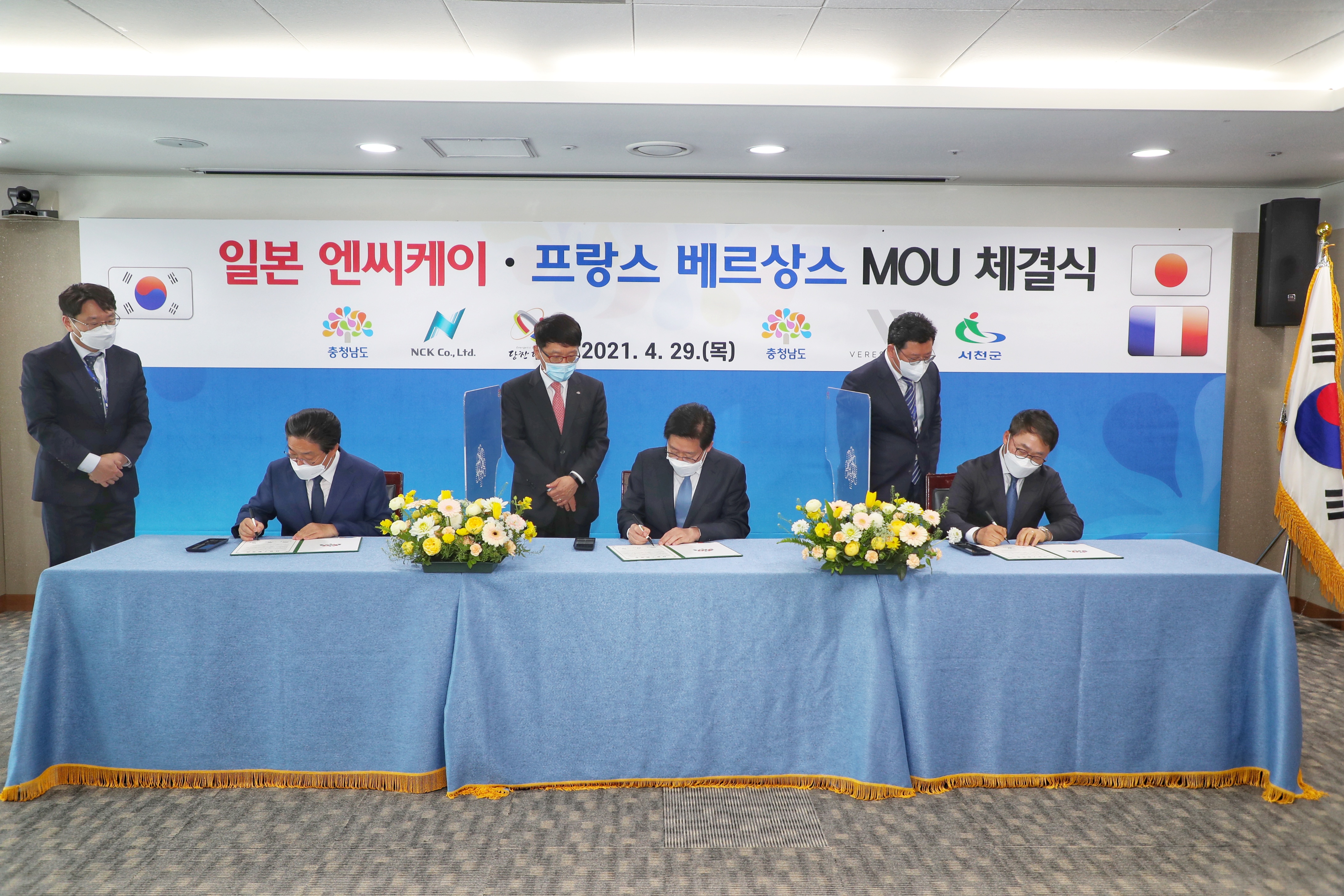 시는 29일 11시 충남도청 상황실에서 양승조 충남도지사와 김홍장 당진시장, 김전수 엔씨케이 사장이 참석한 가운데 투자유치 협약(MOU)을 체결했다.
