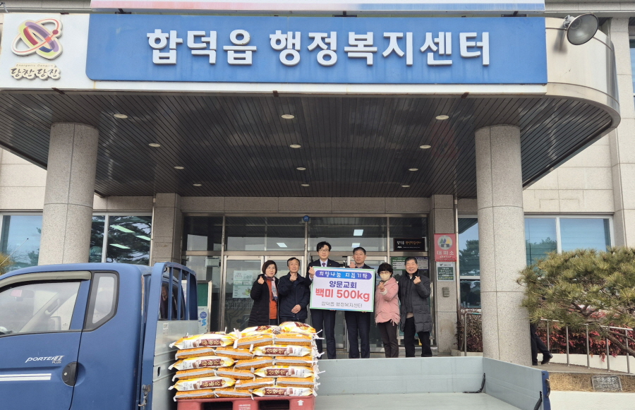합덕읍(면장 구본항)은 28일 합덕양문교회에서 불우이웃을 위해 백미(10kg) 50포를 기부했다고 밝혔다.