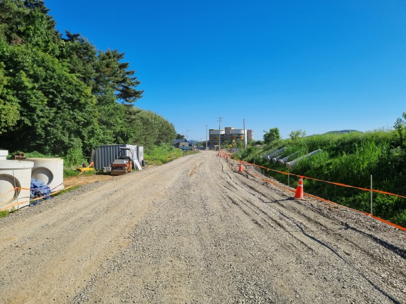 이후 적극적인 토지 보상 협의 및 수용재결을 거쳐, 현재 우수관로 등 지하 매설물을 설치하고 있으며, 내달부터 보조기층 포설 후 길도랑을 설치할 예정이다.