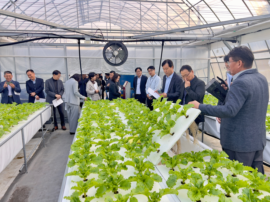 이어 석문면에 있는 ‘당진시 스마트팜사관학교’를 찾아, 청년 농업인의 실습 교육 및 창업 지원을 위한 스마트팜 온실과 복합환경제어 시스템을 확인했다.