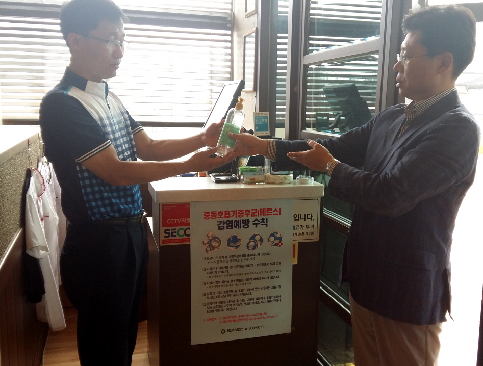 특히 각 업소를 이용하는 시민들의 출입 시 반드시 손 소독제를 사용할 수 있도록 카운터 등에 비치할 것을 요청하고, 메르스 예방수칙이 적힌 홍보물도 함께 부착했다.