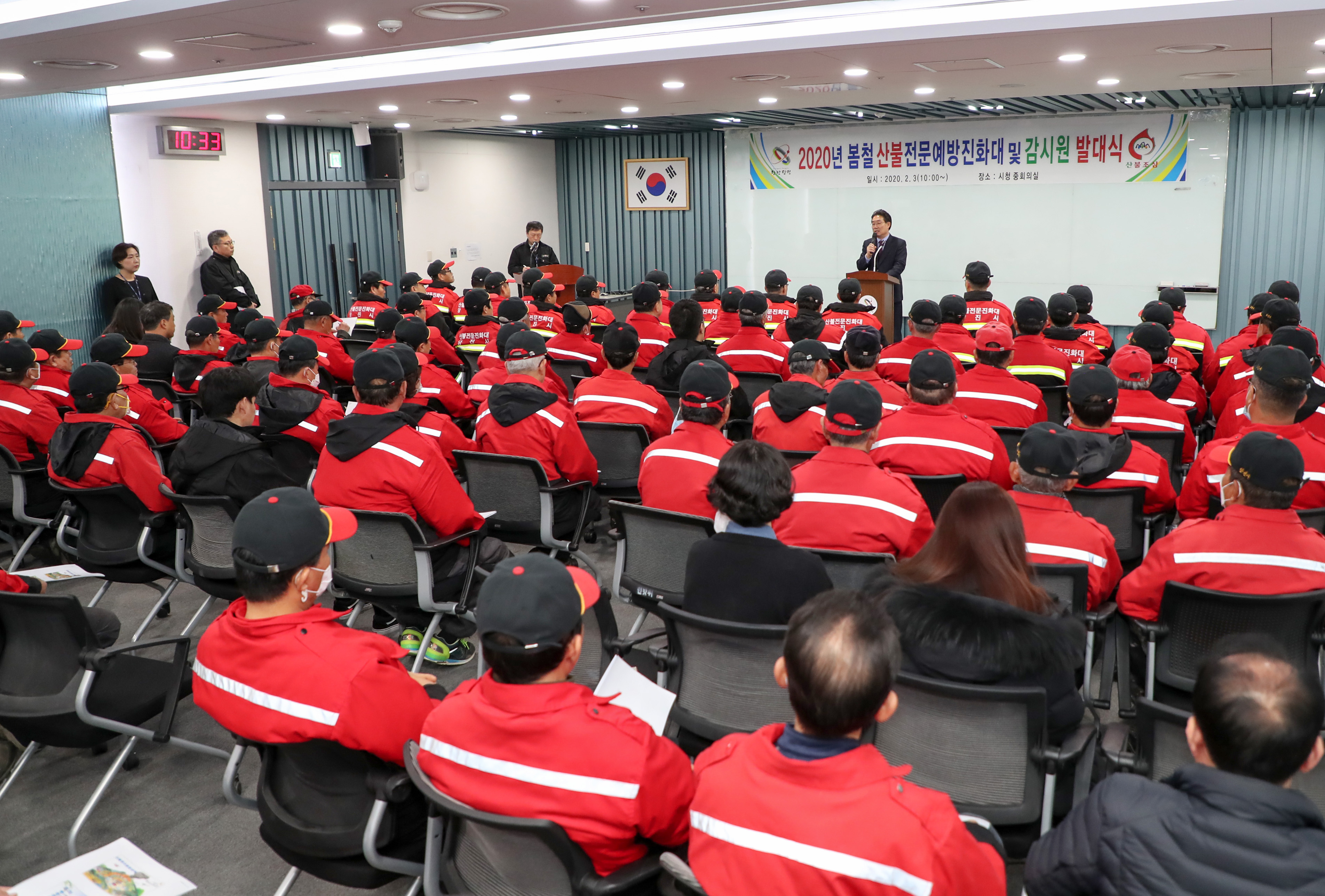 당진시가 봄철 산불 예방을 위해 3일 오전 시청 중회의실에서 김홍장 시장과 산불 전문예방진화대 및 감시원 등 100여명이 참석한 가운데 발대식을 가졌다.