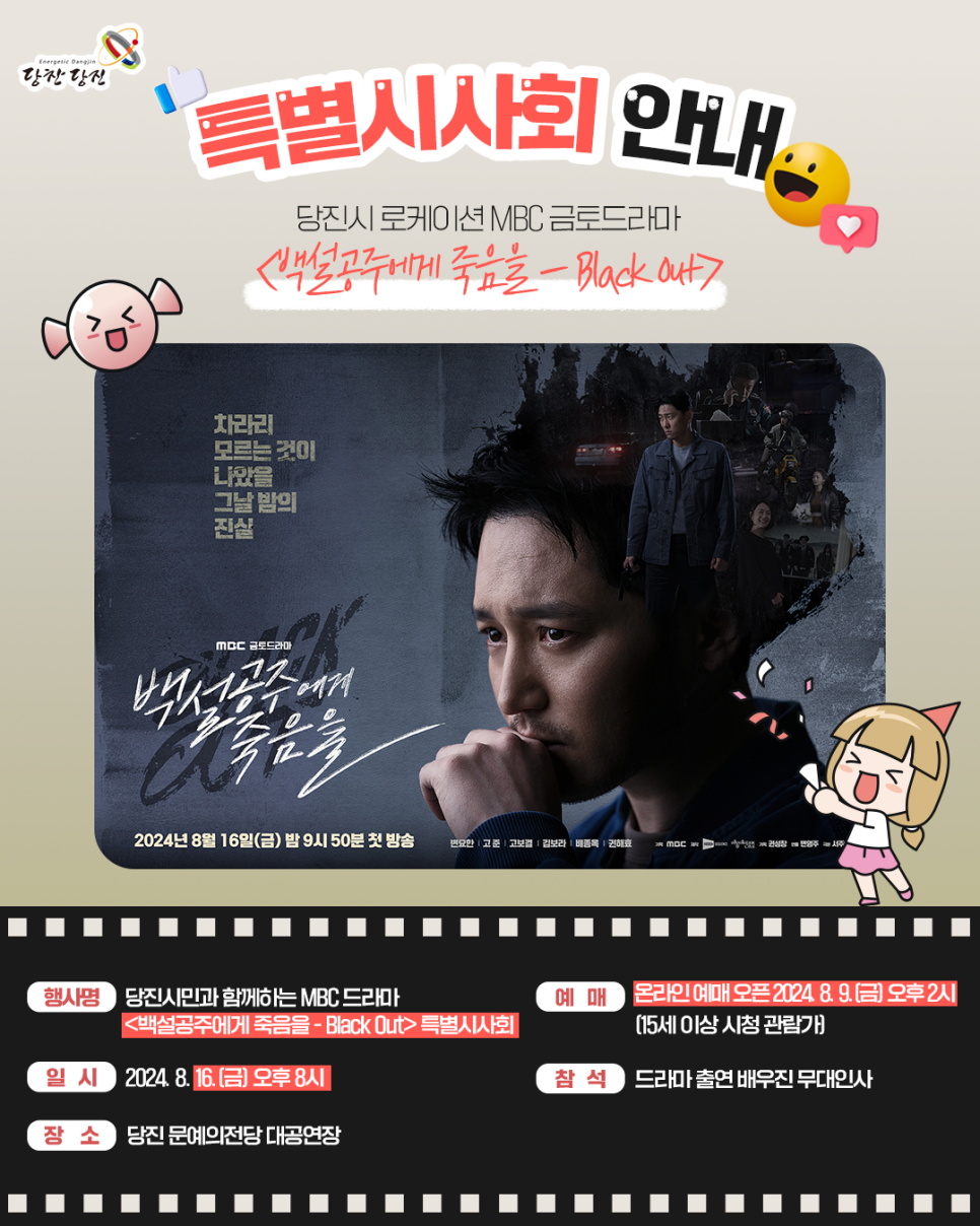 당진시 로케이션 MBC 금토드라마 <백설공주에게 죽음을 - Black Out> 특별시사회 안내