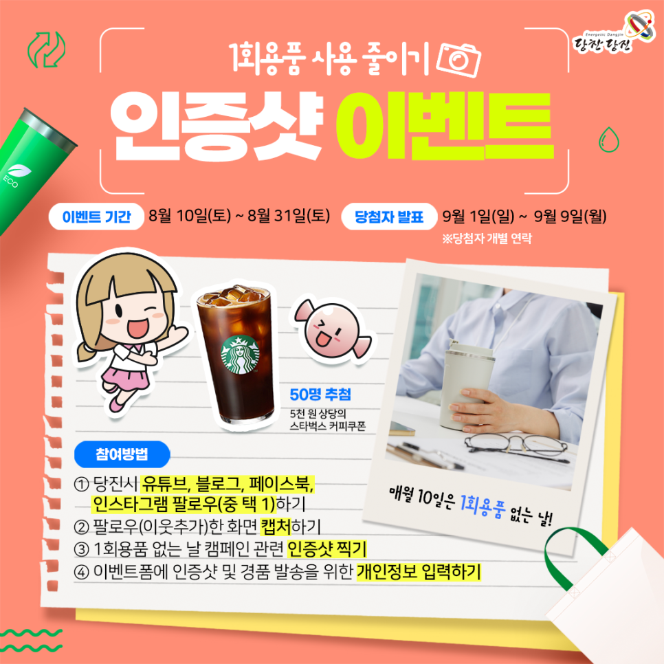 8월 1회용품 사용 줄이기 인증샷 이벤트